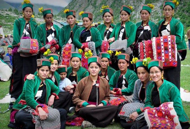 96 Himachal Pradesh has a rich tradition of folk music and dances that mark all festive occasions. The folklore is replete with themes of valour and legendary love stories. The famous ‘Natti’ dance of Kullu is performed mainly by men wearing short tunics and churidars (tights) and the embroidered Kullu caps. Martial dances like the ‘Burah’ in Sirmaur and Birsue and ‘Ghugti’ in upper Shimla are performed with the waving of axes and swords. Beautiful Kinnauri women dressed in traditional costumes with chunky silver jewellery perform the ‘Bakayang’ dance. Masked dances recounting romantic and satirical themes are performed in the Jubbal and Rohru valleys of Shimla. Himachalis celebrate fairs and festivals throughout the year with dance and music. The Buddhist gompas or monasteries have famous mask dances, performed by the lamas. The Losor festival is celebrated with the ‘chhaam’ dance to celebrate the death of the oppressive 9th century Tibetan ruler Langdarma. Performed in elaborate costumes and masks, the dance marks the triumph of good over evil. In autumn, ‘Fullaich’ or the Festival of flowers is celebrated in the villages of Kinnaur. Villagers collect wild flowers and make offerings to the local deity. Every twelve years, there are special celebrations, which are marked by singing, dancing, and merrymaking. The Dussehra celebrations of Kullu in October are a curious amalgamation of tribal and Hindu religious beliefs. Over two hundred local deities are brought into the valley on palanquins and Lord Raghunath is worshipped to the accompaniment of music and dance. The Dussehra festival, commemorating the victory of Lord Rama (an incarnation of Vishnu) over the demon king Ravana, is celebrated throughout the country, but has a special flavour here in Kullu. The ‘Lavi’ fair at Rampur on the India -Tibet road, is a centuries-old gathering of traders from Ladakh, Tibet and Afghanistan. This ancient trade route was a lifeline for the local people, who traded in wool, dry fruits and horses. Though the entire area has opened up to the rest of the country with improved communication links, this traditional fair still holds a relevance and importance in the lives of the locals.