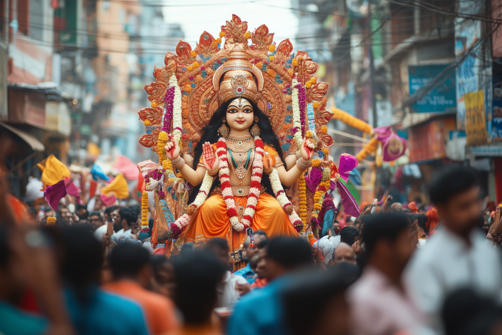भारत में दशहरे को भव्य रूप में मनाया जाता है। रामलीला का मंचन पूरे महीने चलता है। मंदिरों को सुंदर फूलों और दीपों से सजाया जाता है। कई स्थानों पर माँ दुर्गा की विशाल प्रतिमाओं के पंडाल लगाए जाते हैं। संपूर्ण देश में यह त्योहार उल्लास के साथ मनाया जाता है।