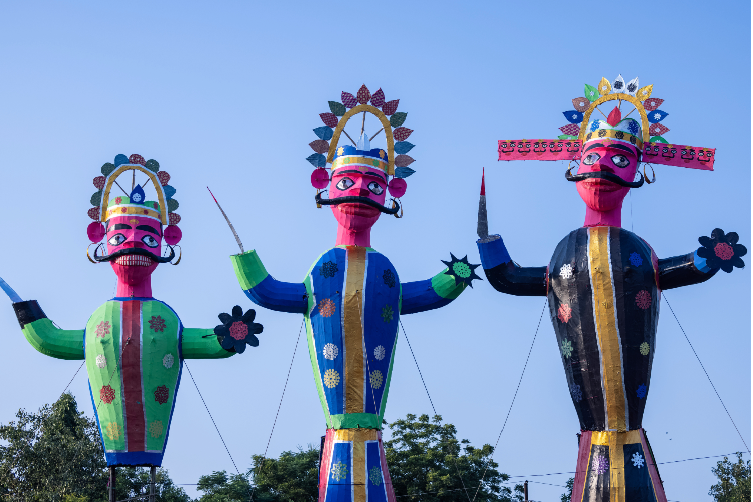 भारत में दशहरे के दिन रावण, कुंभकर्ण (रावण के छोटे भाई) और मेघनाद (रावण के पुत्र) के पुतले जलाए जाते हैं। ऐसा माना जाता है कि इससे बुराई का अंत होता है और सकारात्मकता की विजय होती है।