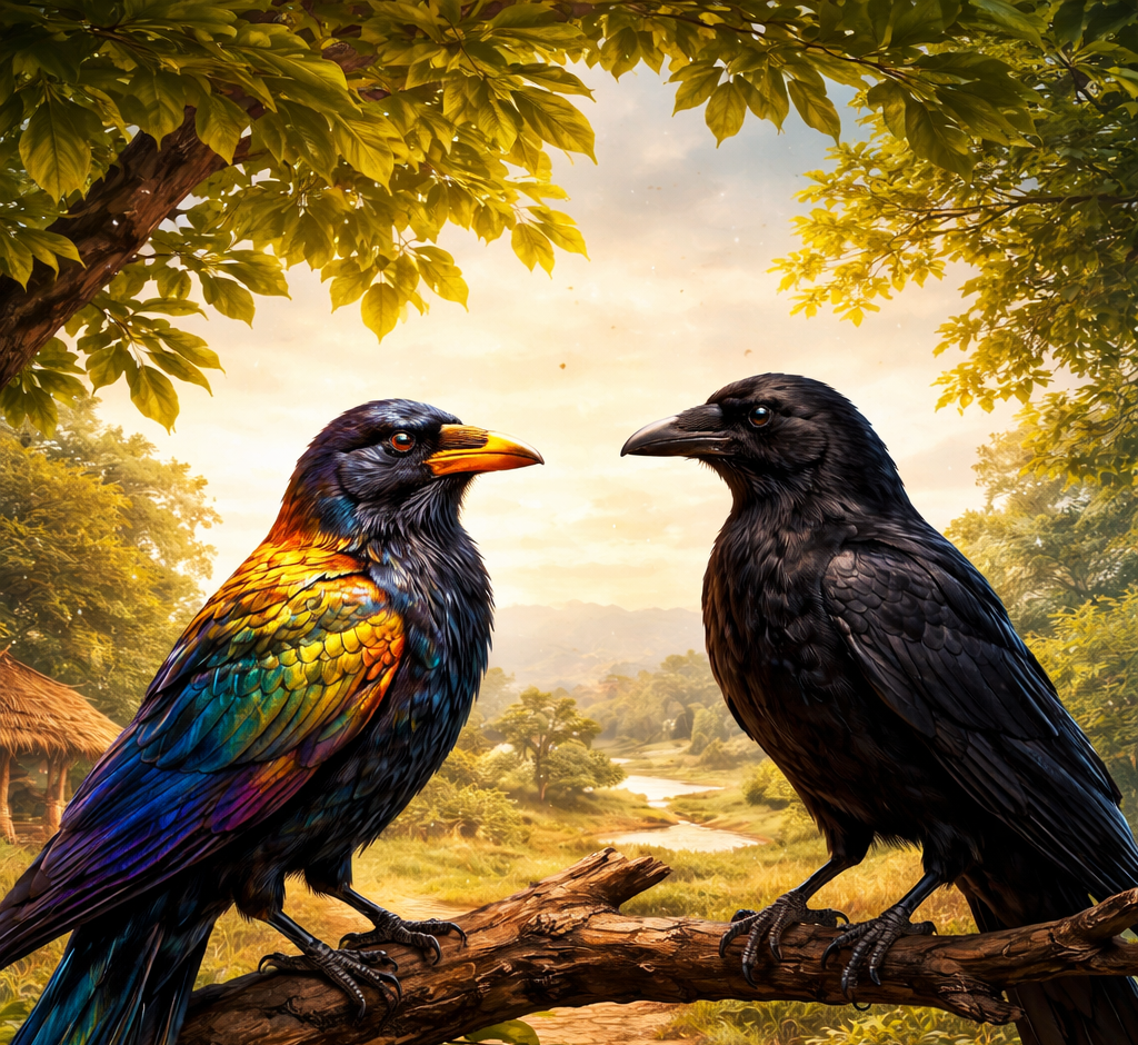 From that day on, the crow became black forever — a reminder that disobedience and broken trust have consequences.